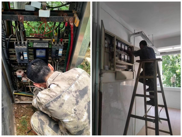 高温天气,对于水电维修及保障是一种考验,为确保水电设施设备正常运转,后勤处科学安排,暑假初始,水电科组织工作人员对全校各处水电设施、设备进行全面检查、维修,消除安全隐患。同时,严守值班值守制度,网络、电话、微信群等报修渠道正常开通,维修人员随时待命,有力确保学校假期正常办公、师生生活、假期施工以及学校食堂店面营业的正常用水用电需求。
