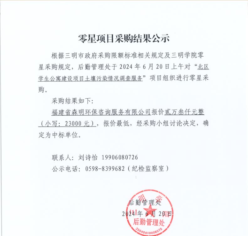 北区学生公寓建设项目土壤污染情况调查服务项目零星采购结果公示