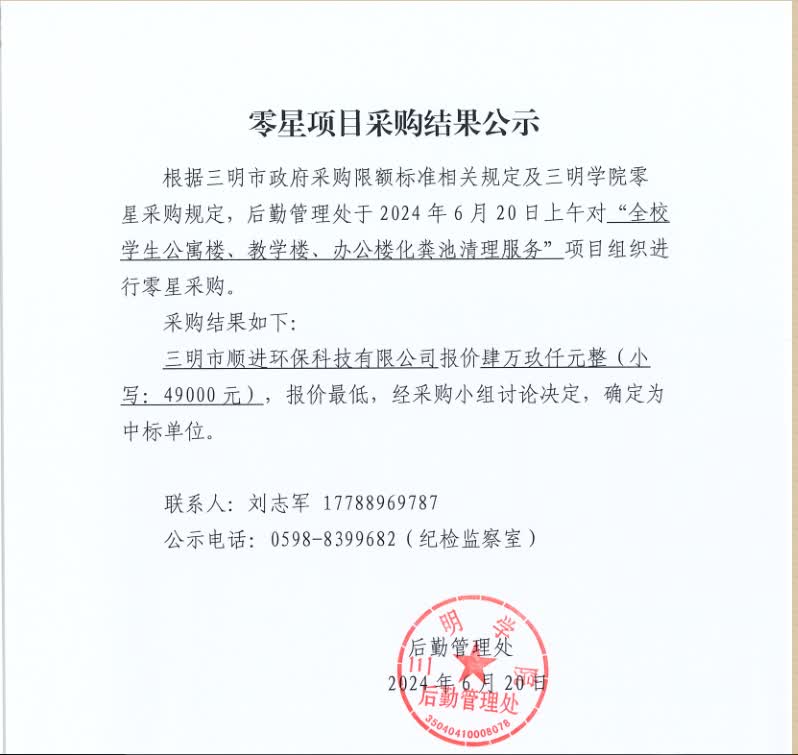 全校学生公寓楼、教学楼、办公楼化粪池清理服务项目零星采购结果公示.