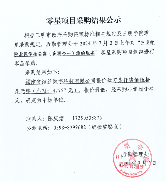 yl6809永利官网北区学生公寓(多测合一)测绘服务零星采购结果公示