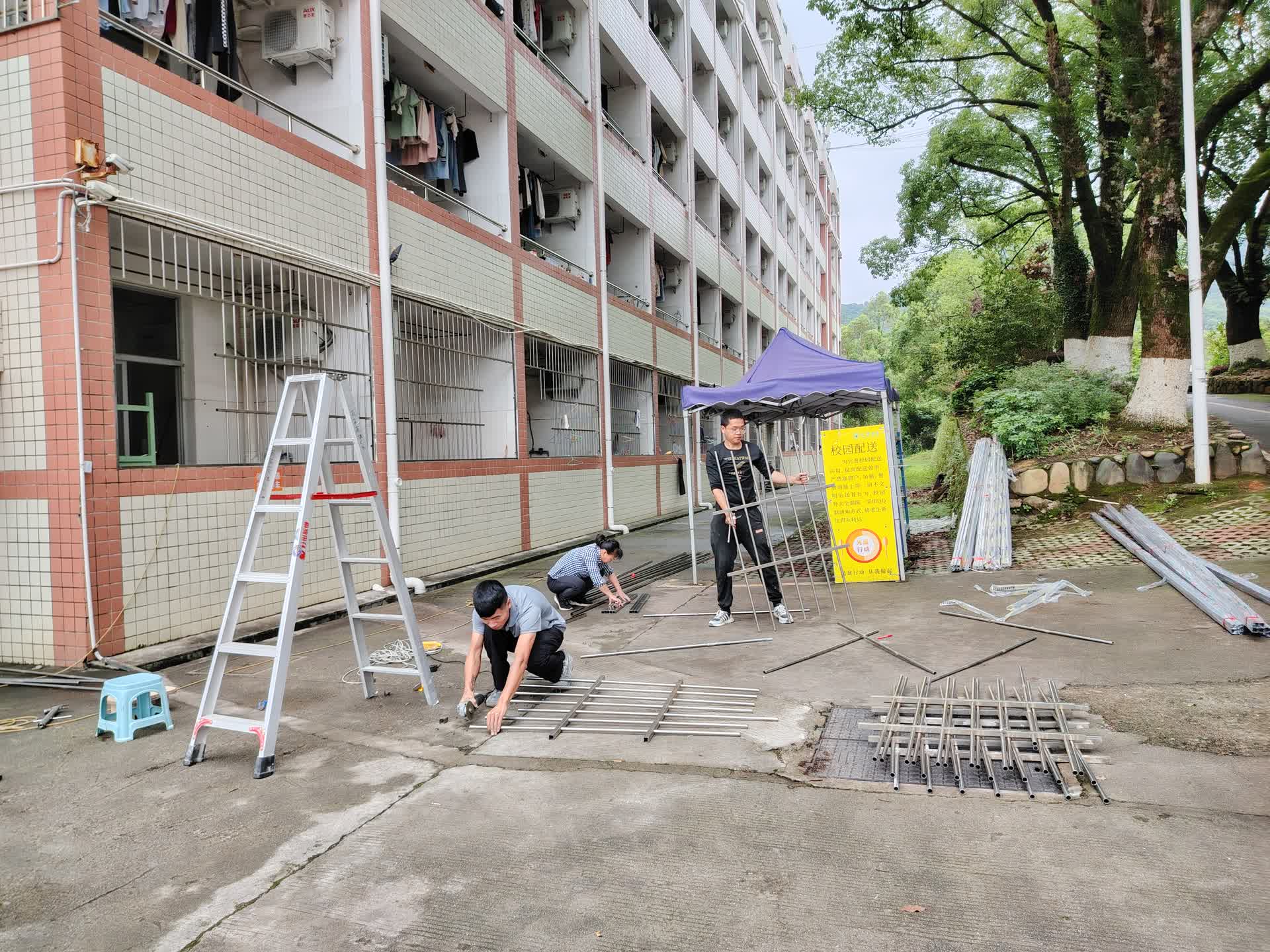 后勤无闲日,假期人更忙。为减少维修工程施工期间对师生正常生活的影响,后勤管理处利用五一假期,加班加点完成行政楼前两侧车行路面单侧改造,并按照省市消防救援部门的整改要求,组织完成了学校475间学生公寓消防逃生窗防盗网应急改造。五一假期,重点项目建设放假不放松,体育馆项目施工不停歇,完成屋面网架结构施工。同时,加快数字经济大楼,北区学生公寓设计进度,并推进新工科518文创区改造设计工作。