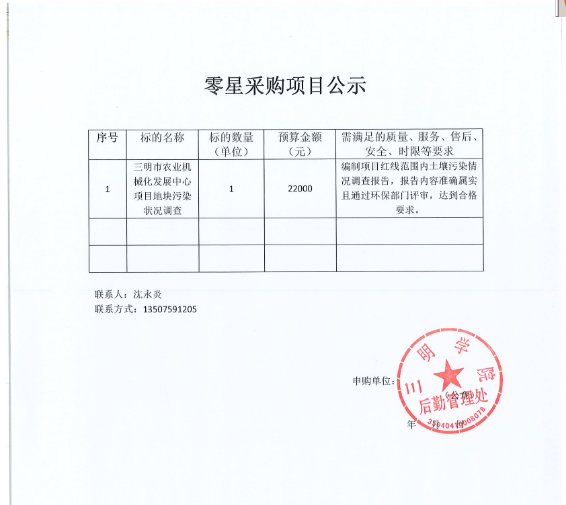 三明农业机械化发展中心项目地块污染状况调查零星采购项目公示