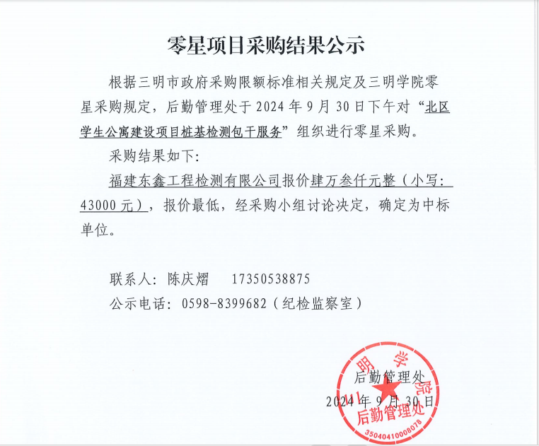 北区学生公寓建设项目桩基检测包干零星采购结果公示