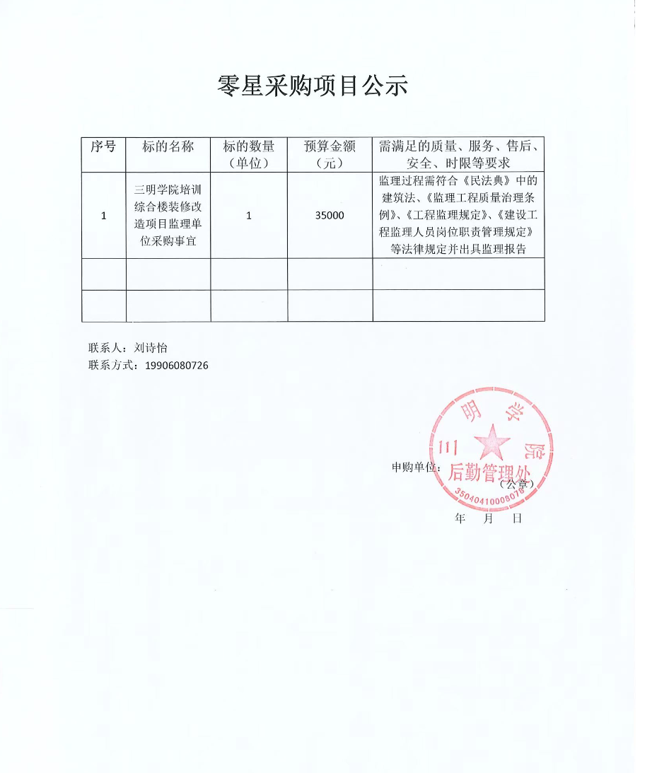 yl6809永利官网培训综合楼装修改造项目监理单位零星采购项目公示