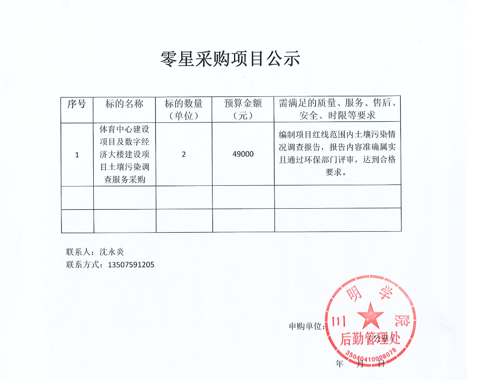 “底洋地块(yl6809永利官网产教融合数字经济大楼、体育中心)土壤污染调查服务项目零星采购公示
