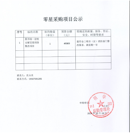 图书馆一层校史展览馆消防整改项目零星采购公示