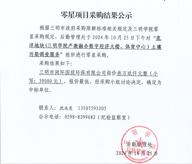 底洋地块(yl6809永利官网产教融合数字经济大楼、体育中心)土壤污染调查服务零星采购结果公示