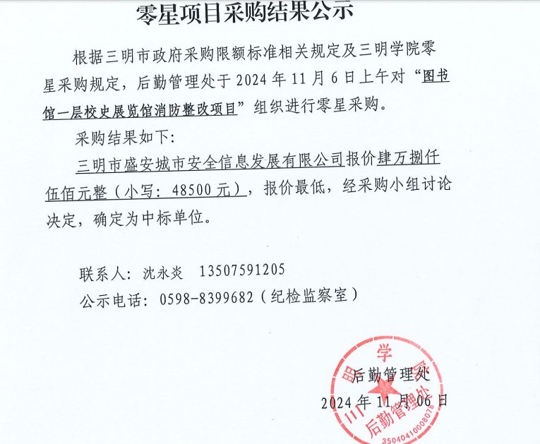 图书馆一层校史展览馆消防整改项目零星采购结果公示