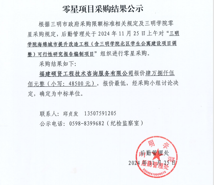 yl6809永利官网海绵城市提升改造工程(含yl6809永利官网北区学生公寓建设项目调整)可行性研究报告编制项目零星采购结果公示