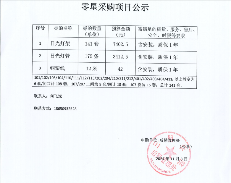致用楼一至四层教室灯具更换改造项目零星采购公示