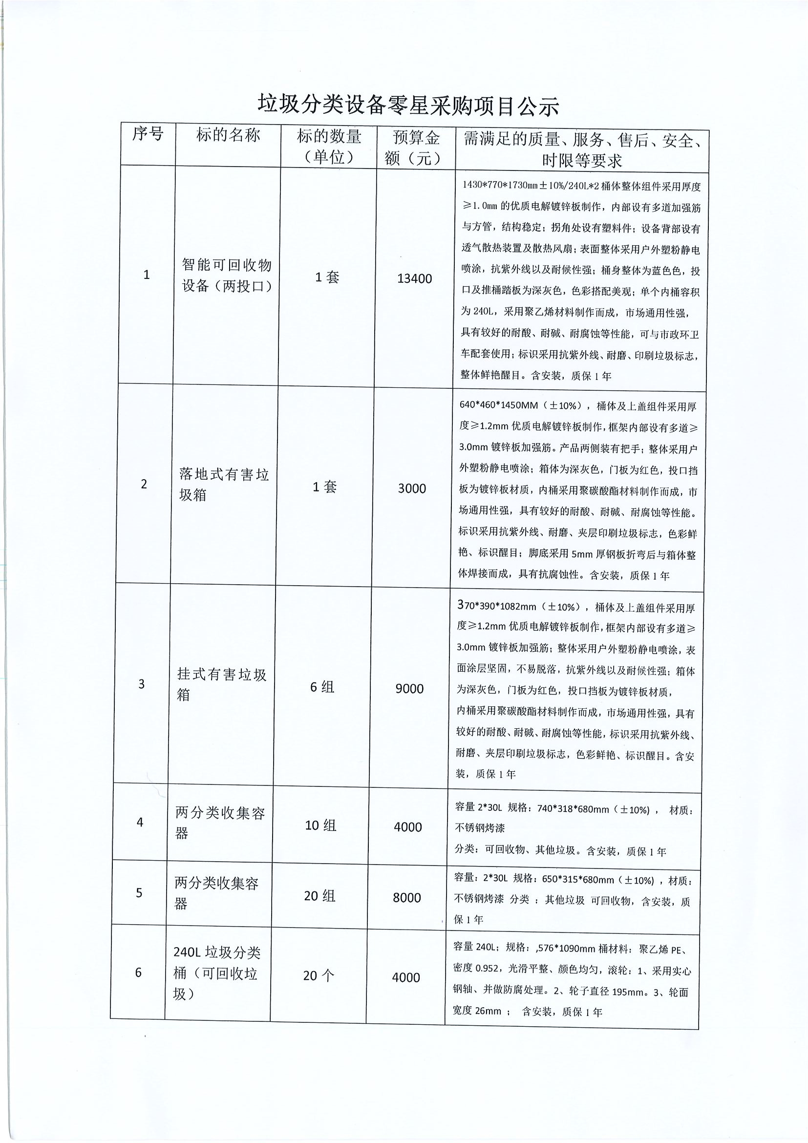 垃圾分类设备零星采购项目公示