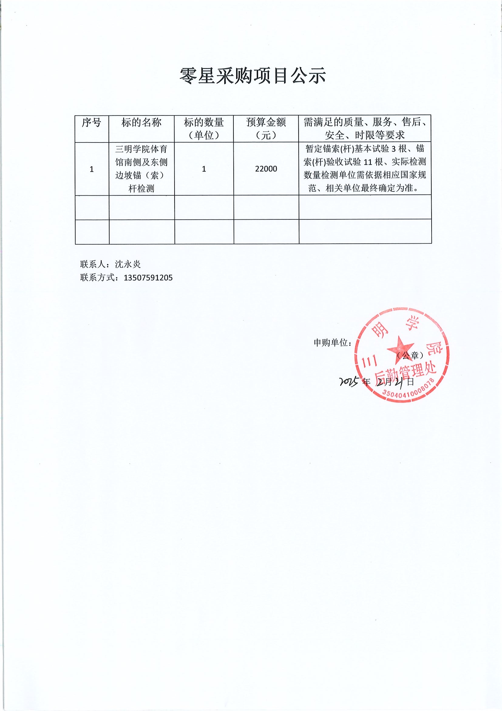 yl6809永利官网体育馆南侧及东侧边坡锚(索)杆检测服务零星采购项目公示