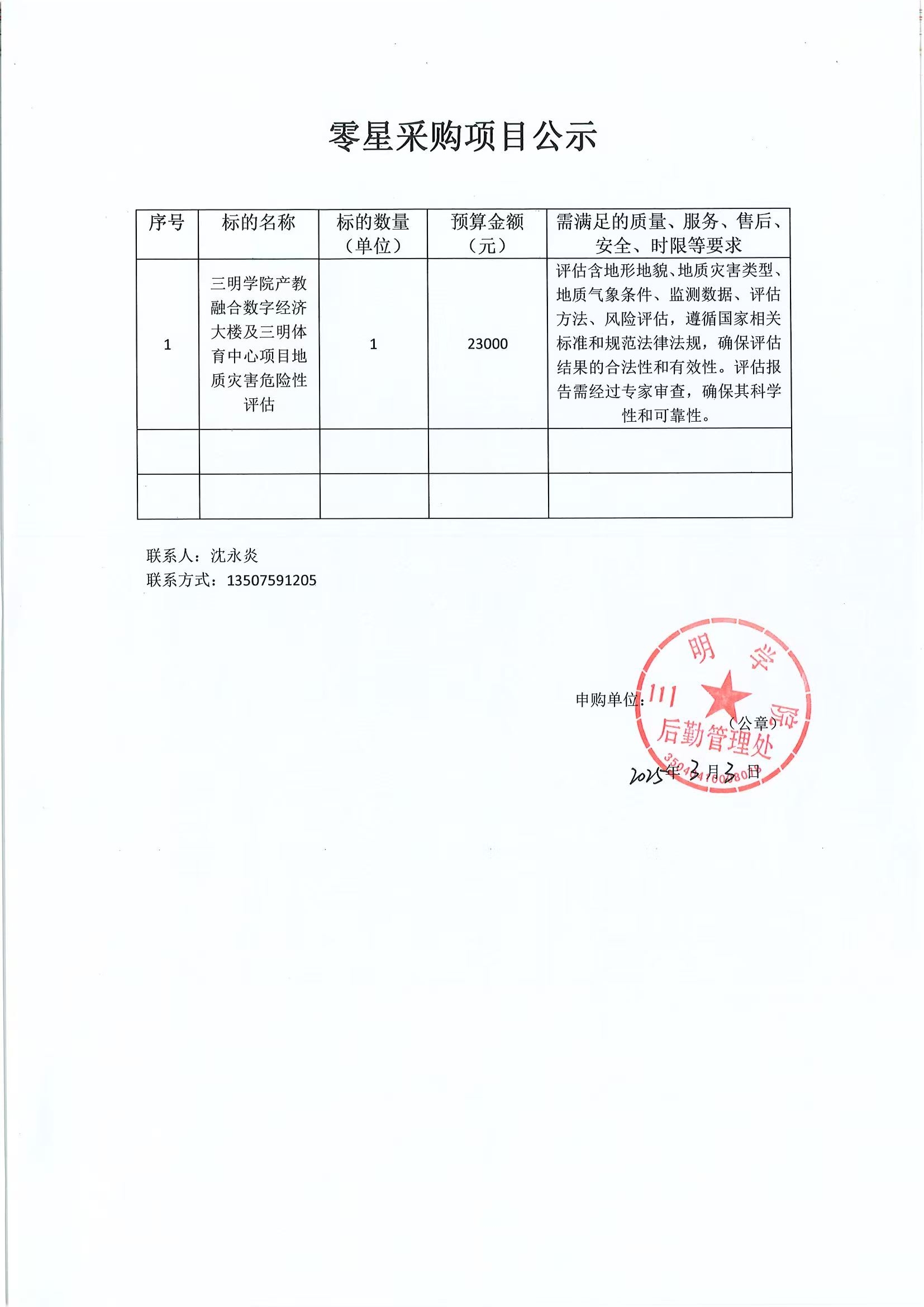 yl6809永利官网产教融合数字经济大楼及三明体育中心项目地质灾害危险性评估服务采购项目公示