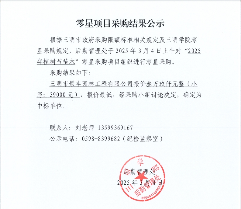 yl6809永利官网2025年植树节苗木零星采购结果公示