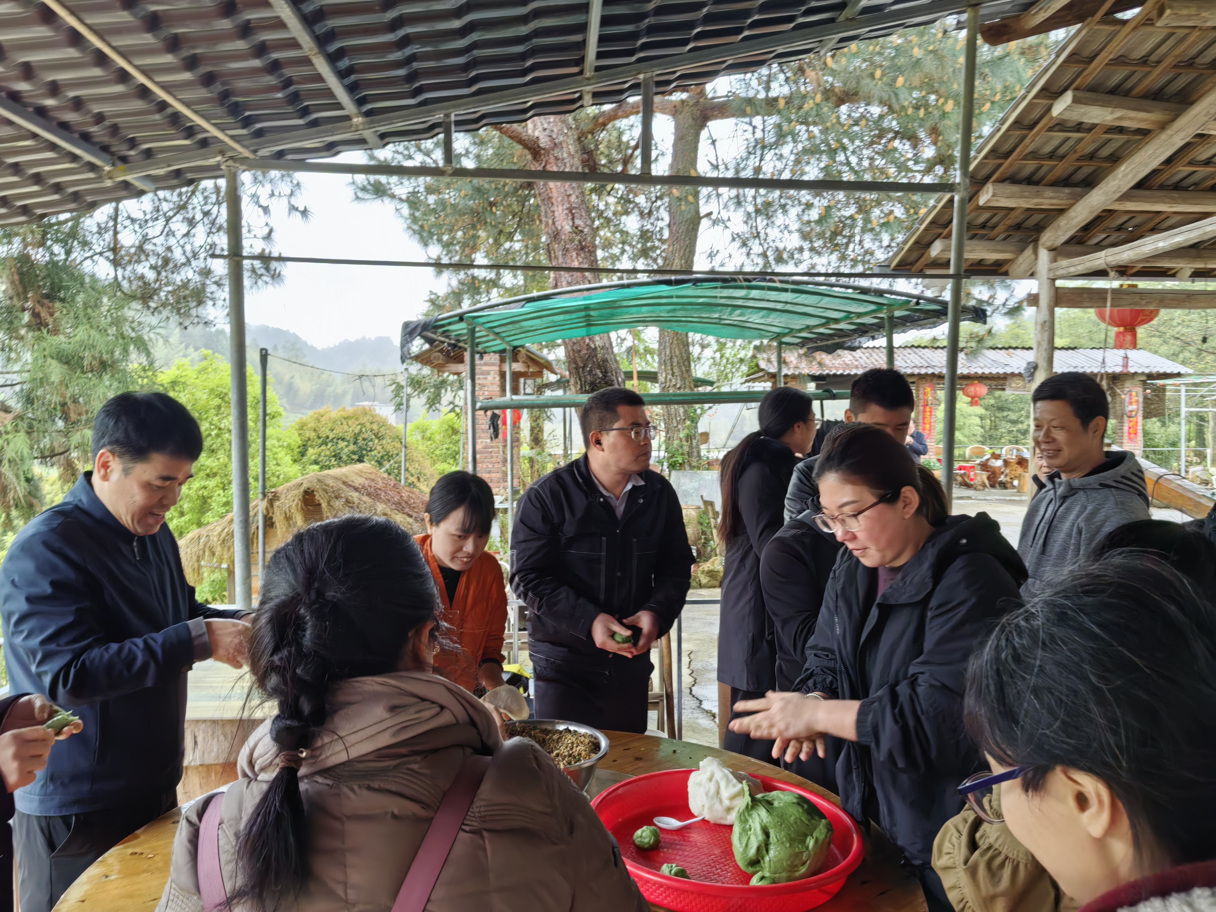 到达紫云村后,教职工在云台人家农家乐参与客家米果制作,揉面、包馅、蒸制等传统工序与后勤工作“精耕细作”的职业精神形成共鸣。下午参观当地木耳种植基地时,智慧温控大棚与菌棒立体栽培技术展现的现代农业图景,让职工直观感受“新质生产力赋能乡村振兴”的实践成果。