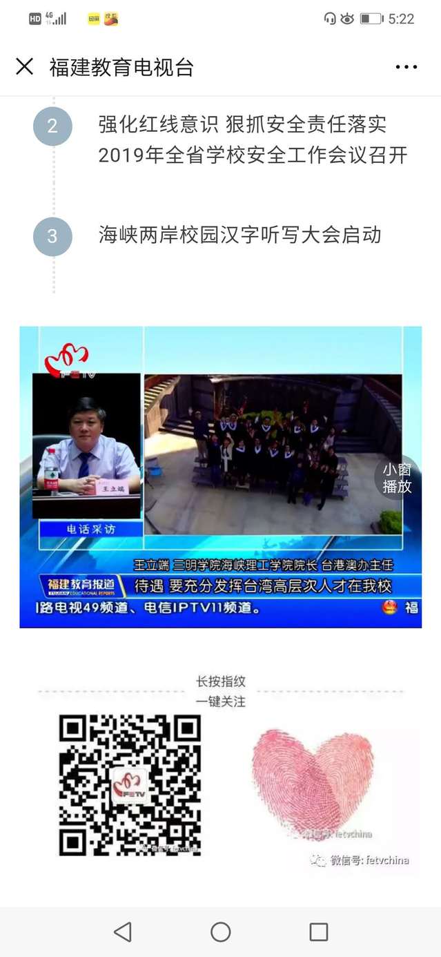 yl6809永利官网海峡理工学院院长、台港澳办主任、历史学王立端教授表示:习近平总书记参加福建代表团审议时的讲话,在我校师生中引起了积极的反响。我们要以习近平总书记的讲话为指导。积极探索两岸融合发展的新路。特别是要加强两岸的教育文化交流与合作。增进台湾同胞对民族、国家的认知和感情。在对台工作中,要贯彻以人民为中心的发展思想,为台湾同胞谋福祉。yl6809永利官网近期正在申报省社科基地、福建书院与经世致用文化研究,希望通过书院以经世致用文化研究这一科研课题,促进两岸对中华民族传统优秀文化的认同。我们要加大对台湾高层次人才的引进力度,准备在2019年引近40位台湾博士以上的台湾高层次人才。同时,提高以在校工作的台湾高层次人才的待遇。要充分发挥台湾高层次人才在我校事业发展中的作用,要加大两岸青年学生的交流与融合,通过开展两岸大学生体验营、研学营、两岸大学生新生篮球赛等活动。吸引更多的台湾高校青年学子来我校,增进台湾大学生对祖国的认同和感情,已实现青年大学生的心灵契合。