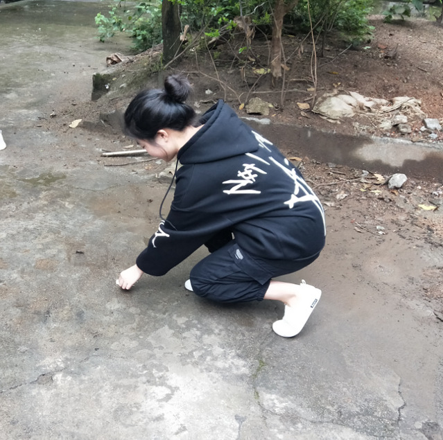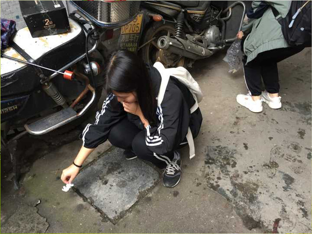来到教学点,志愿者们认真地清理路面上的碎纸屑、饮料罐以及夹在乱石堆里的烟头、塑料袋等垃圾。志愿者们蹲下身子,细心地从碎石缝隙中抠出,虽然捡垃圾很脏很累,但是没有一个志愿者退缩。他们用自己的行动,宣传着保护环境的标语。