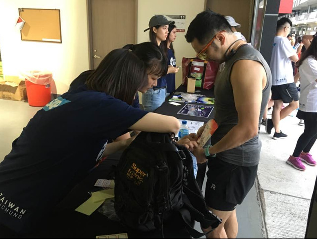 5月4日,志愿者们准时到达台中丽宝赛车场进行赛前准备,了解活动流程与工作内容,随后将活动当天路跑者所需要的物资进行整理与摆放。由于报名人数近六千人,活动当日志愿者们先后在报到处、衣保区和更衣室进行轮流值班。志愿者们先在报到处协助工作人员进行路跑者的个人资料确认、发放物资、整理信息等,从而确保每位路跑者在规定时间内完成报到工作。随后,志愿者们便在衣保区负责路跑者们开跑前物品的寄放保管与整理,待其回来领取个人物品与赛事所提供的完赛礼。