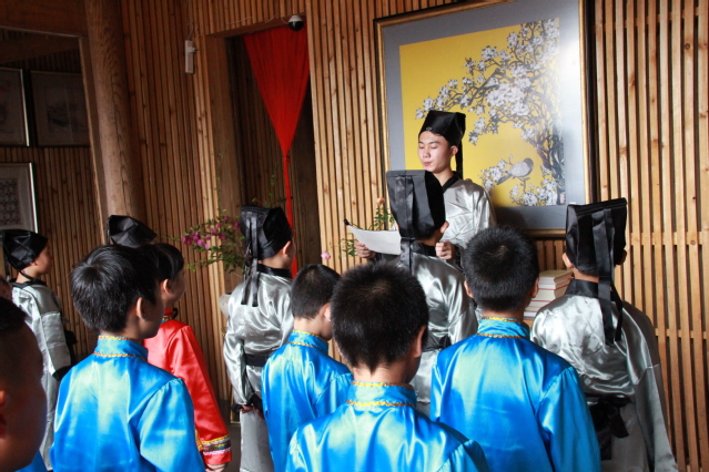 伴随着清晨柔和的阳光与孩子们清脆的笑声,今日的研学旅行就此开始。本次研学旅行主要分为剪纸馆行拜师礼、凤凰广场朗诵、参观红色旧址三个部分。换上民族服的孩子们兴致勃勃的穿梭于剪纸馆里,在古筝声的配合下席地而坐进行冥想、拜孔子像、齐诵弟子规,将自己全身心的融入这古韵十足的氛围之中。在小海豚带领下孩子们步行至凤凰广场,聆听文化传承人讲述当地红色文化历史。孩子们争先恐后的提问,发亮求知的大眼睛以及朗诵《我骄傲我是中国人》,无一不昭示着中华民族的光明未来。红色文化旧址的参观与红色文化知识的普及中,满满的红色情怀油然而生,令人不由得对各位革命先辈们肃然起敬。