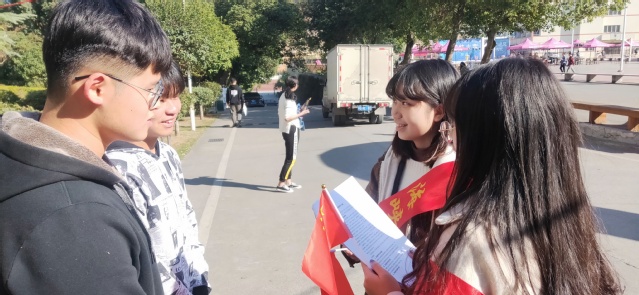 12月9日学生会成员置校园各地对行走于路上的同学进行一二·九运动精神的宣讲及采访并赠予小红旗,以纪念一二·九运动为契机,激发同学们的爱国热情与时代使命感,帮助同学们进一步了解历史、确实地认识到自己的责任。最后,通过朋友圈及微博推送关于一二·九精神文章以提高宣传效果。