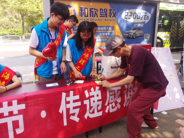 志愿者们身穿蓝马甲,系着绶带,在桥西社区认真地引导社区的儿童在便利贴上写下表白母亲的故事、对母亲的感恩和祝福,然后贴在“感恩墙”上,并赠送一个气球给小朋友,让他们送给他们的母亲。活动期间引起了不少路人的围观和参与,不仅仅小朋友们参与了此次活动,甚至就连大人们也积极参与,将自己对母亲真诚的祝福写在墙上,片刻展板上便密密麻麻的贴满了对母亲最真挚的祝福语。