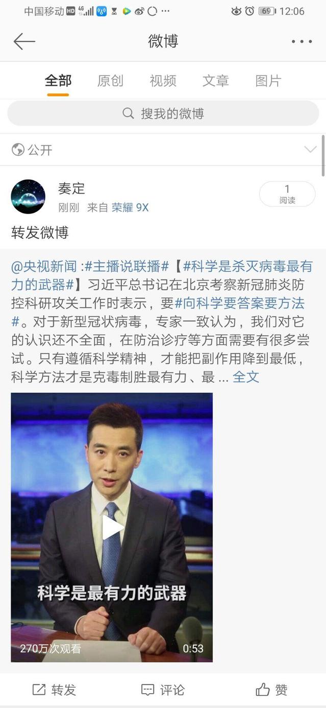 在接下来的日子里,乐睿婕同学通过微博、微信等网络途径进行防疫宣传,在网络平台上频繁发声,积极建言献策,转发正能量文章。为加强宣传力度,她还自主学习宣传视频和海报的剪辑与制作,通过多种途径多种方式进行防疫宣传。她的行动为群众不传谣、不信谣、了解并灵活运用防疫知识贡献出自己的一份力量。