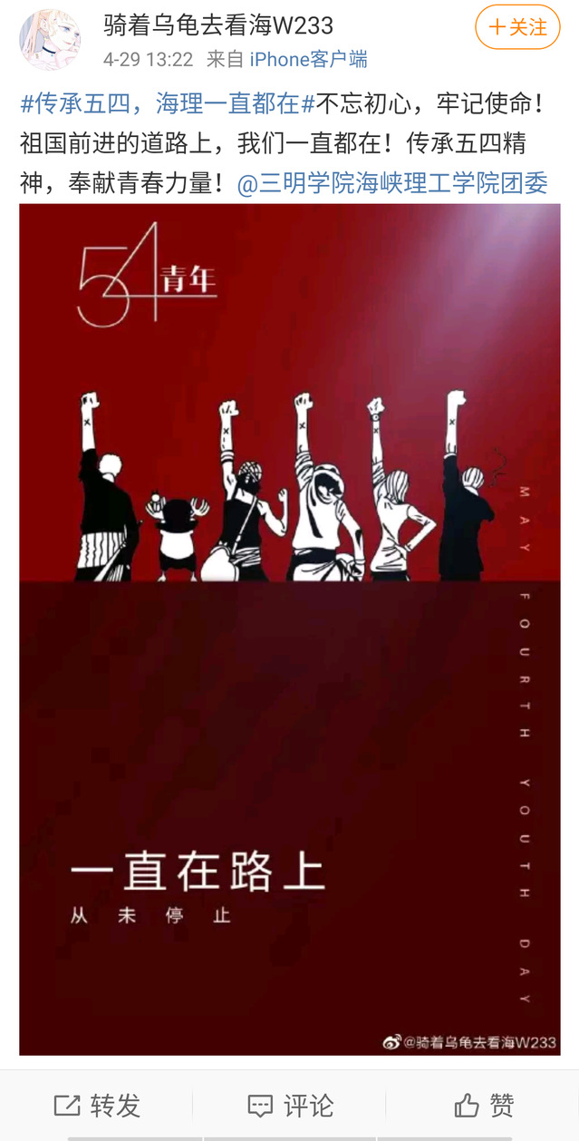 勇立时代潮头,争做时代先锋。为继承和发扬五四精神,海峡理工学院团委微博设立了#传承五四,海理一直都在#微博话题,各团支部积极参与了此次活动。