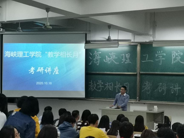 为提升我院育人水平,做好考研服务与指导工作,我院积极响应学校开展“教学相长月”主题教育活动的号召,于2020年10月16日晚在厚德楼505教室,组织开展了“扬帆起航、乘风破浪”——海峡理工学院考研指导讲座,特别邀请到资源与化工学院副院长、中国科学院大学博士郑文辉副教授莅临我院开讲。