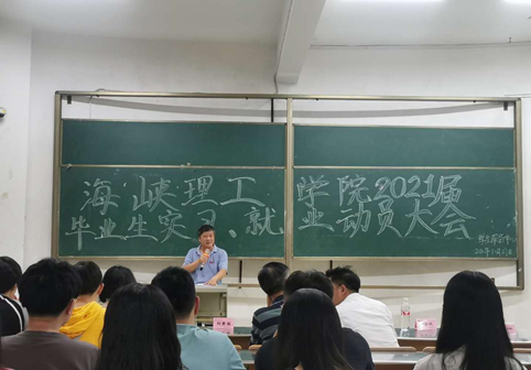 为指导和动员海峡理工学院2021届毕业生认清当前就业形势、把握就业机会,顺利完成实习与就业。2020年10月29日,我院于博学楼127教室召开2021届毕业生实习就业动员大会,出席本次大会的有院领导、院教务科老师、毕业班辅导员以及2017级毕业班全体学生。会议由院党委副书记刘景苗主持。