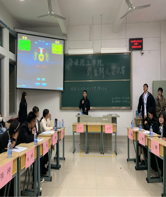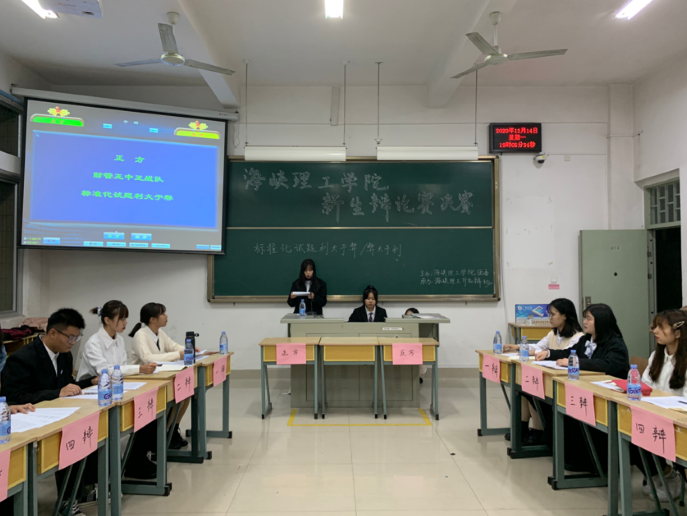 为了丰富同学们的课余生活,加强新生的内部交流和口语表达能力,经过了一系列的激烈角逐后,于12月14日晚7点,在厚德楼112举行了海峡理工学院新生辩论赛决赛,该活动由海峡理工学院行知辩论协会承办。
