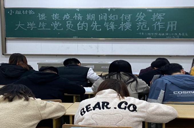 我院于12月11日19:00在厚德楼111举办对第十七批预备党员的第十八期预备党员培训班。各小组学结合自身实际,展开讨论疫情期间如何发挥大学生党员的先锋模范作用。