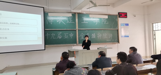 为全面深入学习党的十九届五中全会精神,落实《中共福建省委教育工委福建省教育厅关于教育系统学习宣传贯彻党的十九届五中全会精神的通知》。海峡理工学院于12月23日下午邀请到了十九届五中全会精神教授、博士宣讲团成员张桂梅教授到厚德楼305开展宣讲工作。我院全体教职工以及各年级学生代表参加了本次宣讲会。