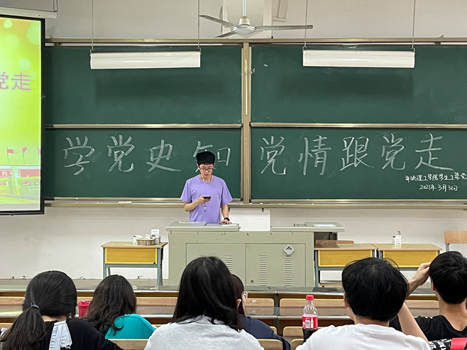 为加强学习中国共产党的光荣历史和中国特色社会主义伟大理论,宣传社会主义现代化建设辉煌成就及英雄模范人物的先进事迹和崇高精神。3月31日下午三点海峡理工学院在厚德楼104室开展“学党史、知党情、跟党走”主题教育学会,参与人员有工学学生党支部书记罗智捷书记、工学学生党支部在校学生党员。