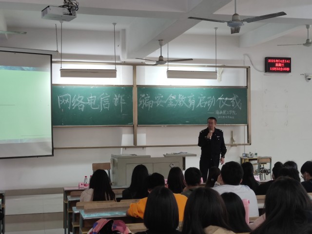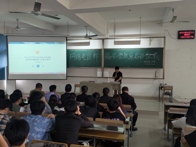 为了深入推进学校“平安校园”建设,加强网络安全教育宣传,切实维护我校校园和谐稳定,我院特于2021年4月14日下午3点整在厚德楼204教室开展“网络电信诈骗安全教育”启动仪式。本次活动获得了学院领导及老师的高度重视。