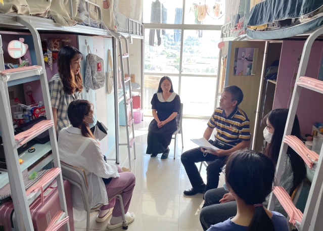 当日上午,海峡理工学院党委书记林光初携学院全体辅导员深入学生宿舍看望留校学生,对同学们表示殷切的关怀并送出节日的祝愿。在问候与祝福同时,海峡理工学院的领导、老师们还为所有学生送去精心准备的中秋月饼,让每一位同学能够感受学院的关怀,共享团圆欢聚的味道。