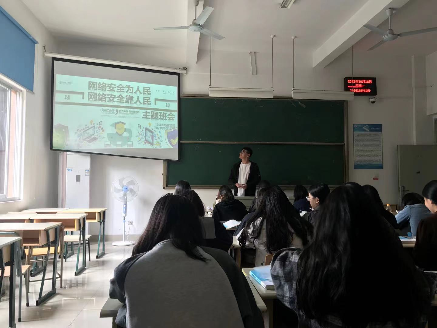 活动期间,我院各班团支部采用“线上+线下”的形式开展“网络安全为人民,网络安全靠人民”主题班会,班会从认识网络安全、党的十八大以来网络安全发展成就、校园诈骗常见的案例、提升安全意识,培养良好习惯这四个方面开展,活生生的网络诈骗案例警醒着同学们应随时保持戒备心,提高自身防诈骗能力。同时,我院还借助微博、抖音、易班等平台做了大量宣传,潜移默化中向学生灌输网络安全知识。