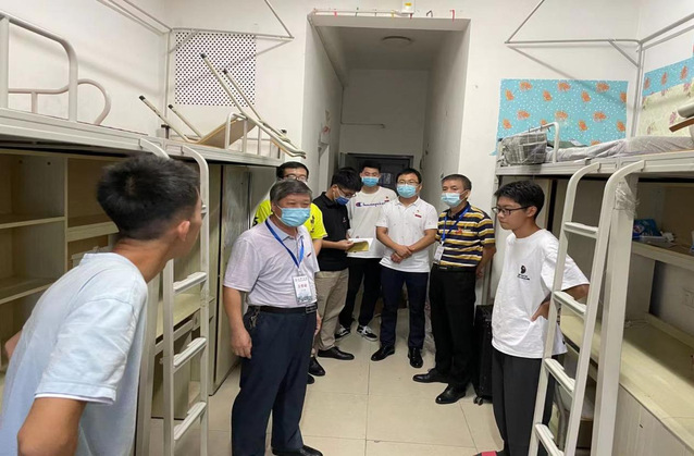 2021年9月12日,为更好地帮助新生融入大学生活,海峡理工学院党委书记林光初、院长王立端、党委副书记陈勇带领新生辅导员来到2021级新生宿舍,了解新生的住宿情况,为来校新生送上关心与祝福。