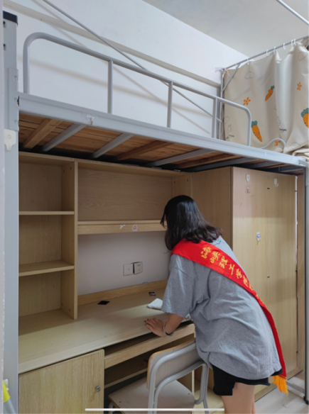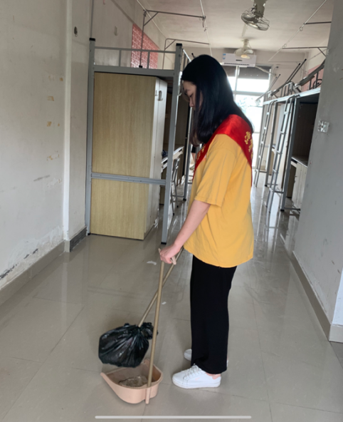 活动中,学生党员们自带抹布、扫帚等打扫工具,按照清扫任务安排,各自来到自己的责任宿舍,认真擦洗新生床铺,打扫宿舍公共区域卫生。经过40多分钟的劳动,每位党员都“战果累累”,新生宿舍全部焕然一新,目光所及之处干净整洁。