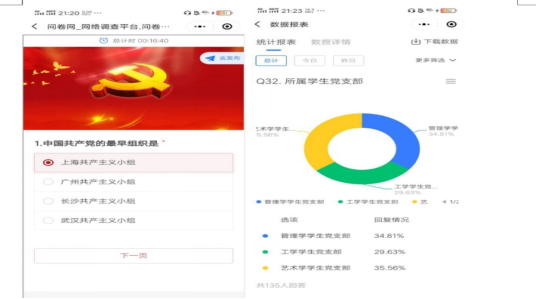 9月22日晚上七点,为重温党的光辉历史,增长同学的党史知识,我院开展了以“学党史,知校情”为主题的线上党史答题活动,共有38个团支部,920名团员参与其中,全员团支部答题情况覆盖率100%。此次活动培养了学生坚定正确的政治方向,树立了努力成为德智体美劳全面发展的志向,推进了我院德育工作又向前迈进新的一步。