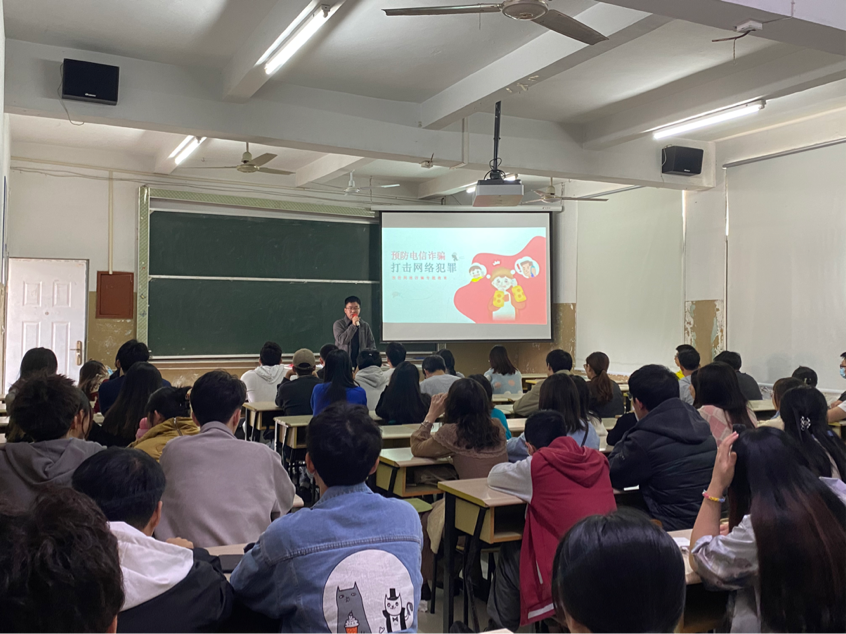 辅导员许鹏向与会学生代表详细介绍了电信诈骗的特点、类型,对中奖诈骗、培训诈骗、冒充他人诈骗、家人意外诈骗、刷单诈骗等诈骗活动的实施过程进行了详细讲解,并重点剖析了本学期以来发生在学生身边的若干起典型案例。他告诫同学们要时刻提高警惕,不贪便宜,不图小利,收到短信与陌生电话时,不轻易点击链接、泄露个人信息,发现问题应沉着冷静,难辨真假时须立即联系辅导员老师。