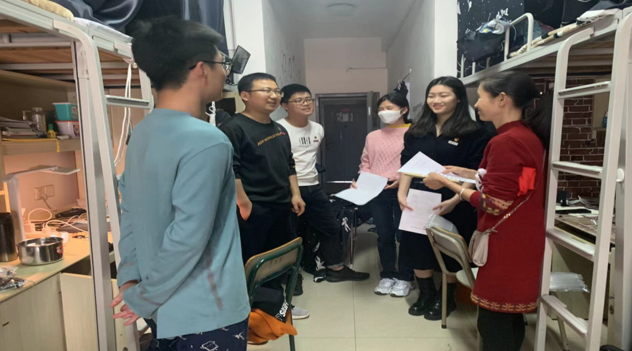 宣讲会后,院党委副书记陈勇带领全体辅导员、学生党员及部分学生干部深入每一间学生宿舍,发放防诈骗宣传材料,提醒下载国家反诈中心APP,开展一对一、点对点安全宣讲教育活动,将“防范电信诈骗”知识传递给每一位在校生。
