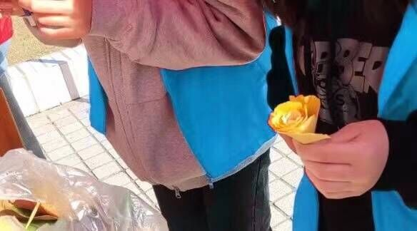 下午2时,志愿者准时到达中山公园,热情地向游客介绍此次活动的内容,引导游客以落叶为纸,传递祝福。活动中,志愿者们耐心陪同来往游人寻找满意的落叶并鼓励他们在亲自收集的落叶上提笔写下祝福。满载文字的落叶可以自己带走保留,可以委托志愿者寄给远方的朋友,也可以赠与陌生人。在一来一往的传递中,以落叶为纸,感恩为笔,让祝福在人群中传递,让瑟瑟冬日充满温馨暖意。