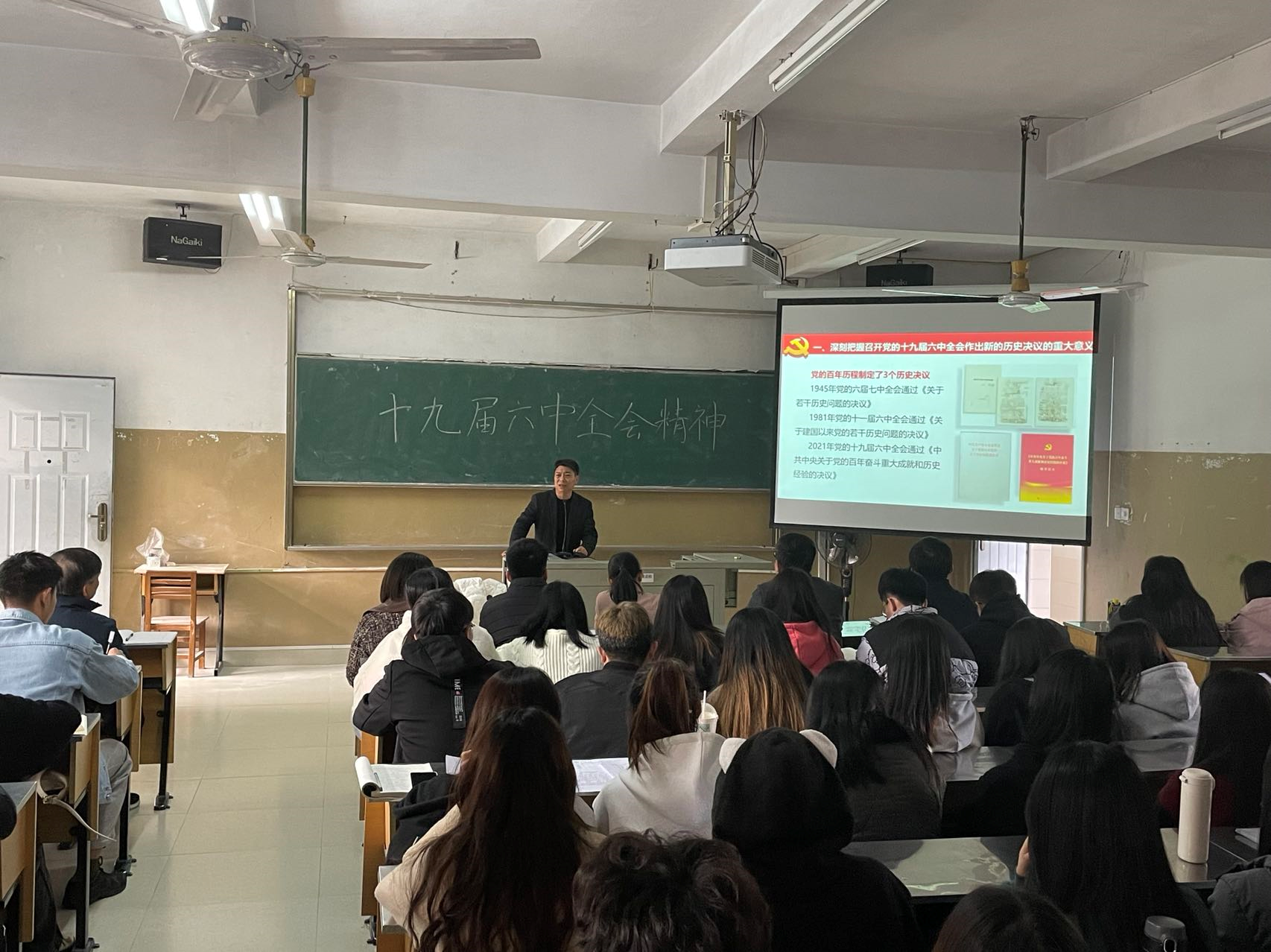 2021年12月22日上午,学习贯彻党的十九届六中全会精神yl6809永利官网宣讲团宣讲报告会在理工三407会议室举行。校宣讲团成员、马克思主义学院陈绍西老师作宣讲报告。海峡理工学院全体教职工和学生党员代表参加学习。
