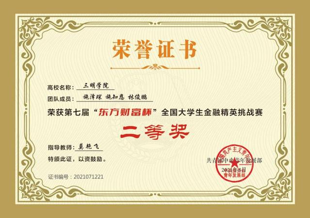 支部学风端正、互帮互助,守住内心、勇于追求,始终贯彻“三明三康”理念,引领支部同学发扬奋斗精神、发挥团员先进性。支部2021年度获校级优秀共青团干部3人、优秀共青团员7人、国家励志奖学金5人。支部32人通过四级、5人通过六级、12人获得初级会计职称、31人达到普通话水平测试二级乙等及以上标准。同时,支部积极营造良好的学习氛围并鼓励团员青年参与各类学科竞赛,支部成员在知识的山峦勇攀高峰并获得优异成绩,在金融类比赛中:第七届“东方财富杯”全国大学生金融精英挑战赛二等奖3人,第八届“东方财富杯”金融挑战赛省赛一等奖3人,促进了良好班风、学风的形成。