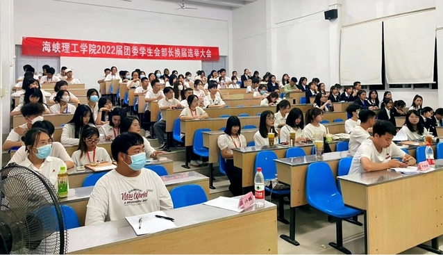 为了调动青年学生干部参加学生工作积极性,扎实推进学院团学工作建设。10月7日晚,海峡理工学院于鸿文楼201召开2022届学生会部长换届选举大会。出席本次大会的成员有团委负责人陈锦湖、辅导员老师、学生会全体成员及竞选者三十余人。