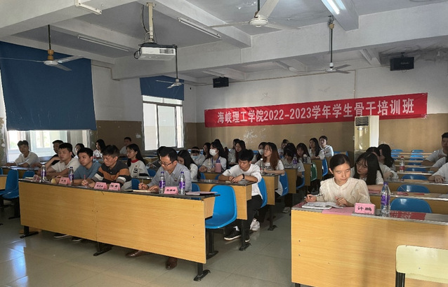为深入学习习近平新时代中国特色社会主义思想,认真贯彻落实党的二十大精神,进一步提升学生骨干政治力、执行力、领悟力。10月26日,海峡理工学院于理工三407教室开展2022-2023学年学生骨干培班开班仪式,院党委书记林光初、院党委副书记陈勇、院组织员林枭、院团委负责人陈锦湖、各辅导员以及学生骨干参与本次培训。