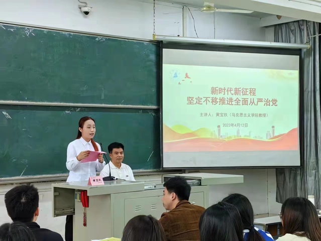 4月12日下午,马克思主义学院与海峡理工学院在理工二联合举办“学习党的二十大精神”专题读书班作专题讲座,我院邀请马克思主义学院教授、福建省教育系统学习贯彻党的二十大精神理论骨干教师宣讲团成员黄宝玖老师作题为《新时代全面从严治党的伟大实践与历史性成就》的专题讲座,马克思主义学院、海峡理工学院全体师生党员以及青年团代表100余人到场聆听。