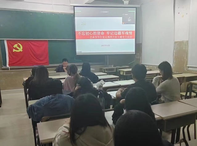 2023年4月24日,海峡理工学院艺术学学生党支部于理工三404教室开展“不忘初心担使命 牢记边疆军魂情”4月份主题党日活动。旨在通过专题党课、在线观影等活动,引导师生党员发扬“无私奉献、自强不息”的边防精神,感受“戍卫边疆、以身许国”的爱国主义情怀。