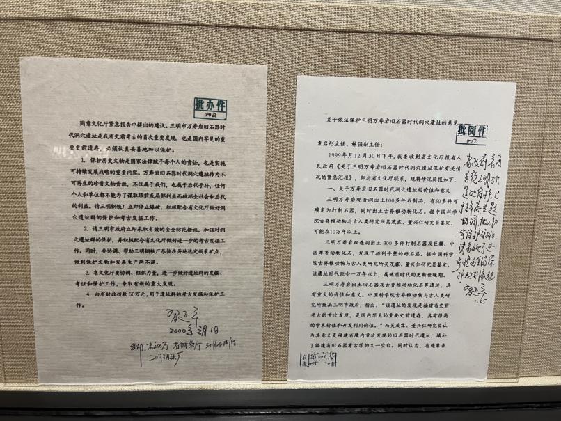 实践队员认真回顾习近平总书记对万寿岩遗址保护作出的两份重要批示,体会习近平总书记对于文物保护与经济发展建设辩证关系的深度思考。