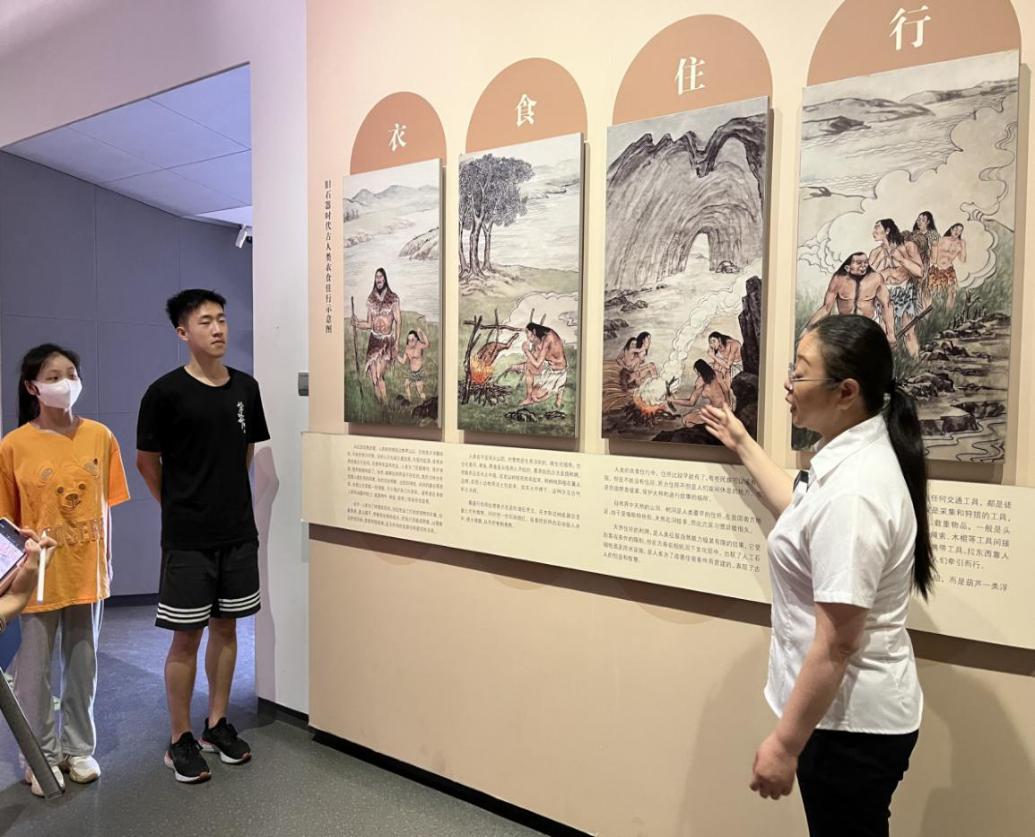“一廊万寿十二景,树绿花红果飘香”,“南方周口店”的万寿岩似乎正透过山水,娓娓讲述着史前的故事。在万寿岩遗址博物馆,实践成员跟随讲解员的脚步,了解万寿岩旧石器遗址考古发掘历程,参观出土的各类石制品、哺乳动物化石等,感受万寿岩遗址从“保下来”到“活起来”的涅槃蜕变,领略旧石器时代文明的魅力。